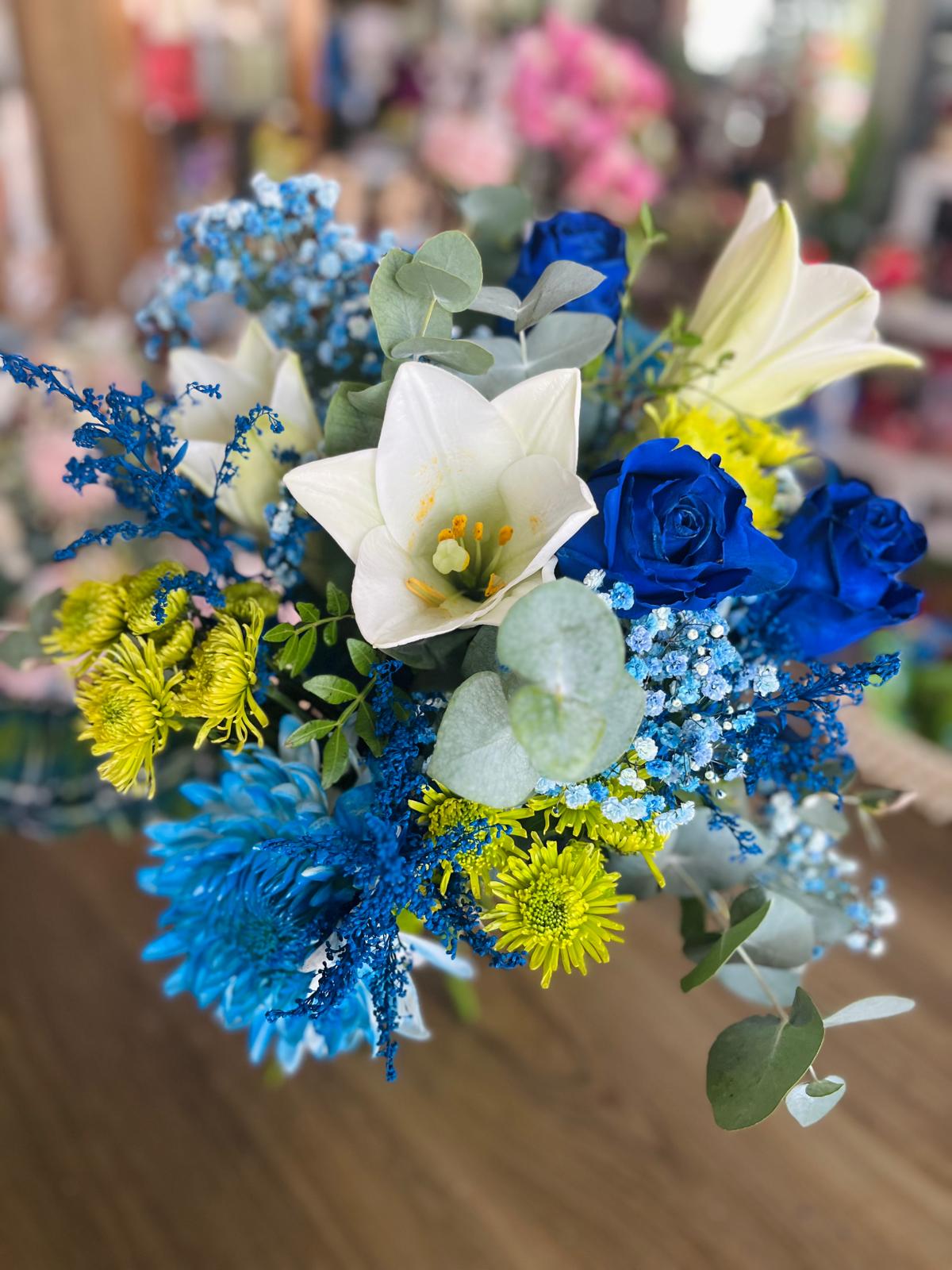 SOMBRERERA DE PERONÍAS BLANCAS CON ASTROMELIAS EN ROSAS Y PANICURA